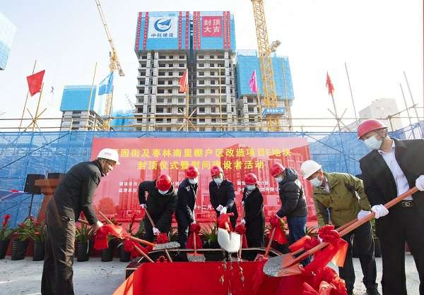 12月22日,伴随着最后一方混凝土浇筑到位,在项目建设、监理、设计等相关单位负责人及集团公司领导的共同见证下,华体会在线-华体会(中国)承建的菜园街及枣林南里棚户区改造项目喜迎主体结构封顶。